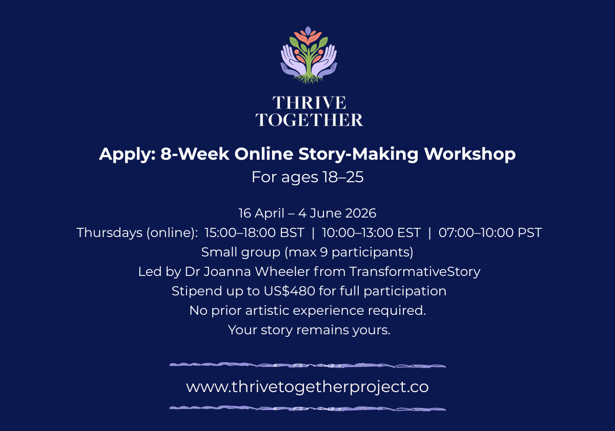This April, the Thrive Together project is hosting a free eight-week story-making workshop for young people who are curious about stories from their own lives.